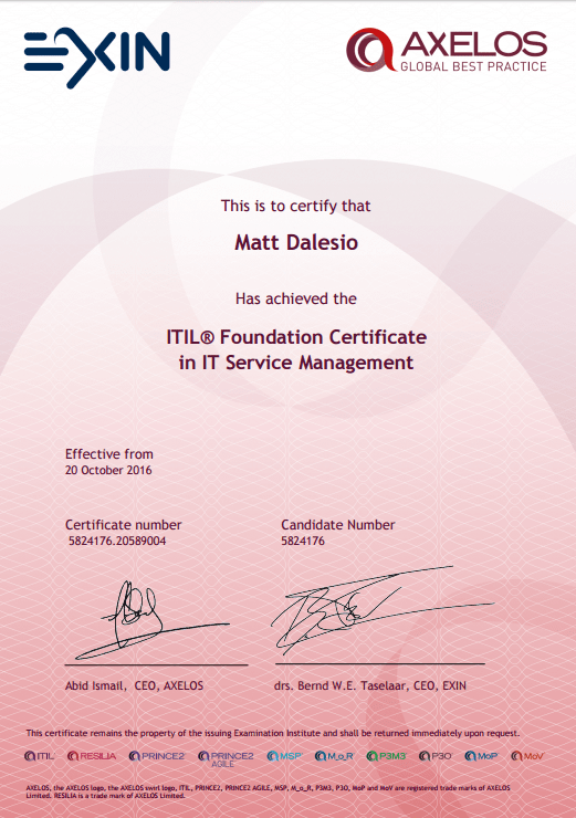 This week I attended the ITIL Foundations training provided by Jim Bolton of ProPoint Solutions Inc. My motivation for taking the training was to gain a basic understanding of the framework that is guiding the university’s IT Transformation (ITX) initiative and more specifically learn more about my role as a database developer as it fits into the Service Transition lifecycle. I was pleased that one of the first questions asked was if anyone has read the Phoenix Project as it is one of my faviorite books on delivering business value using IT. As a person that came from the electronics design world I enjoy discussing the parallels of the service delivery and “DevOps” to the manufacturing world.
